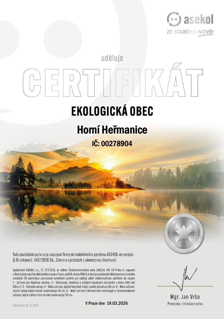Certifikát Ekologická obec Horní Heřmanice